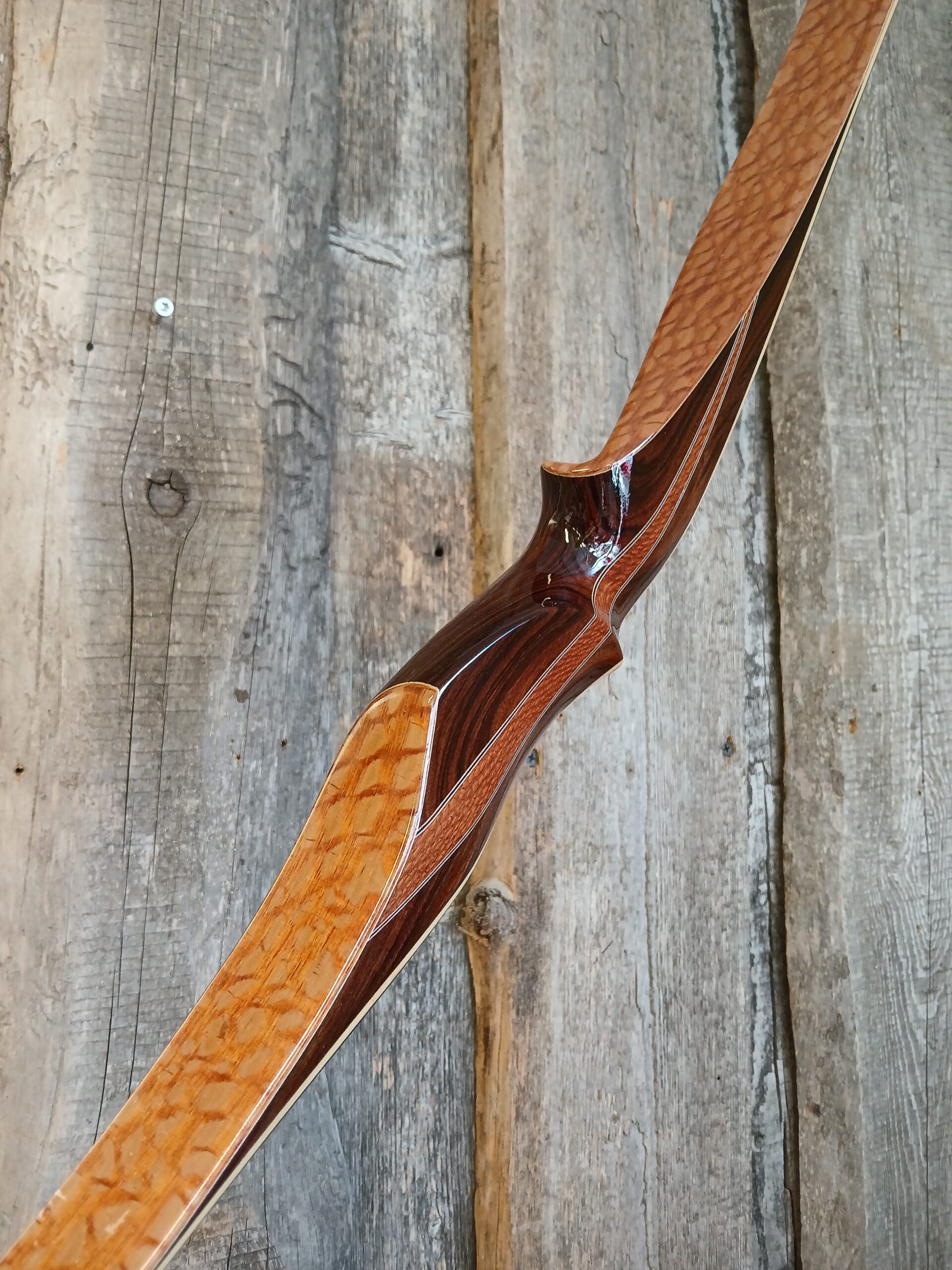 This is a custom made bow to your own specifications, hand crafted by what can only be described as artists, the finish is fantastic, the woods blended beautifully, the grip is comfortable and gives a real sense of security when holding and even the string is matched to your wood choice.
