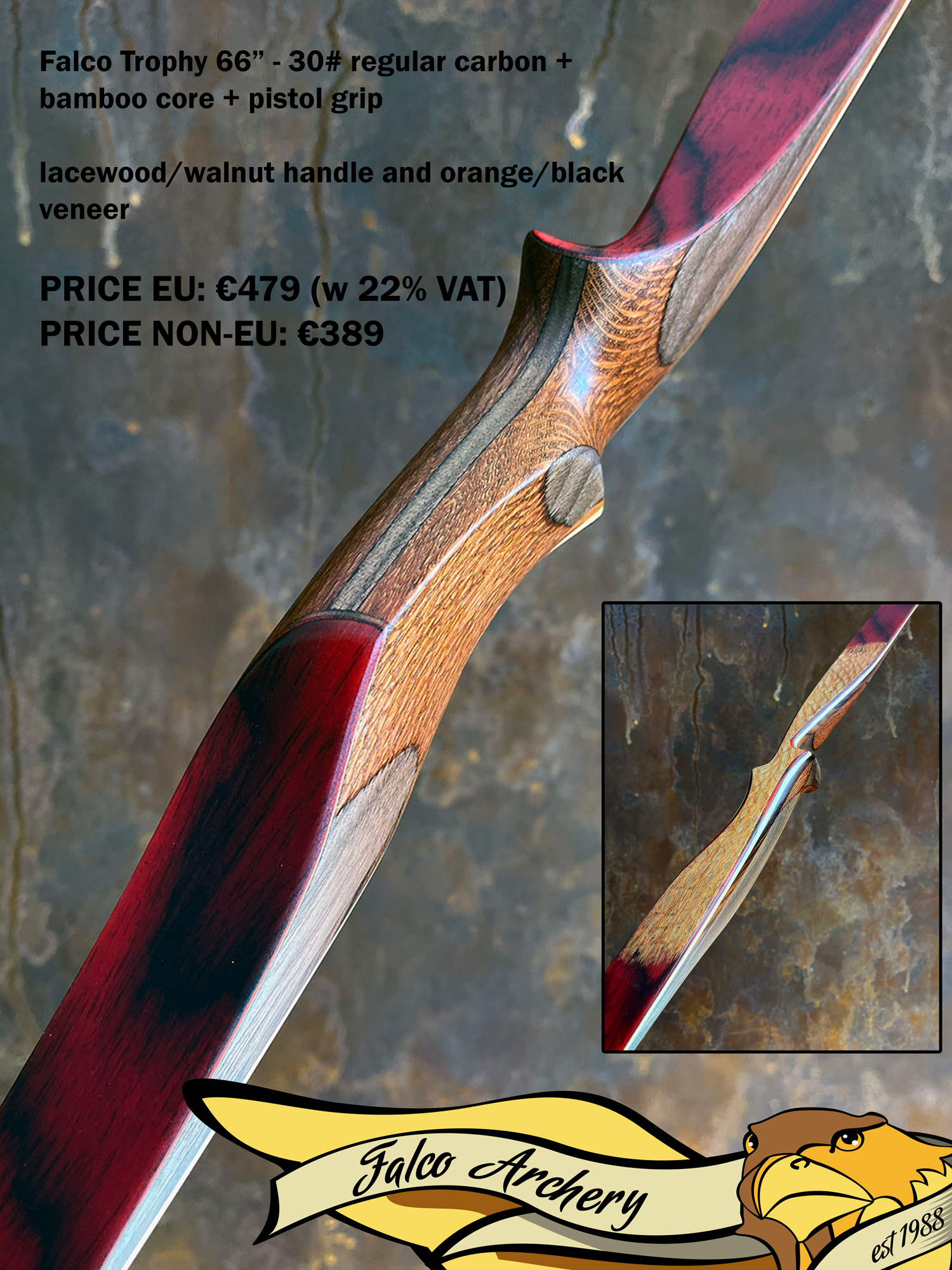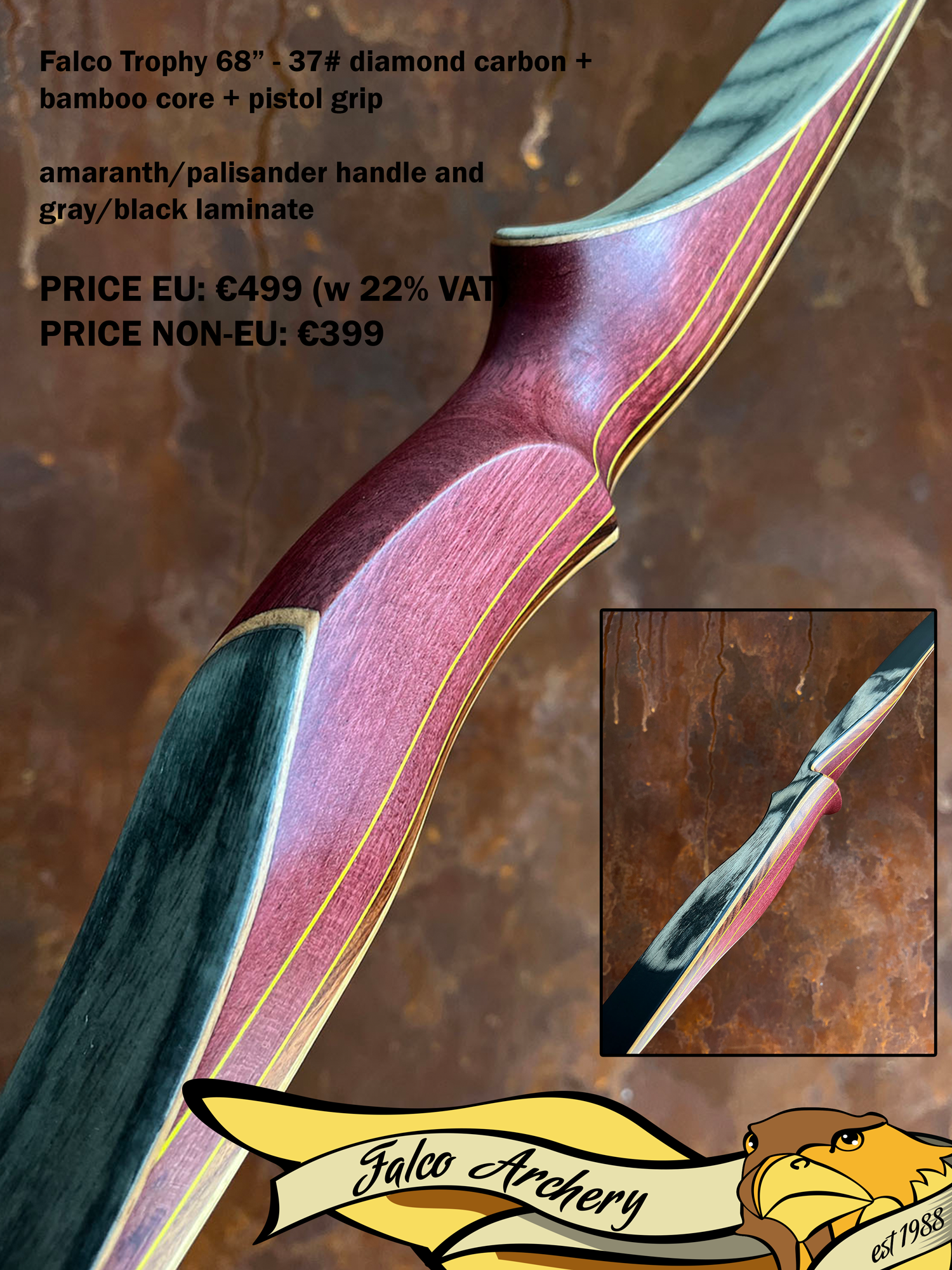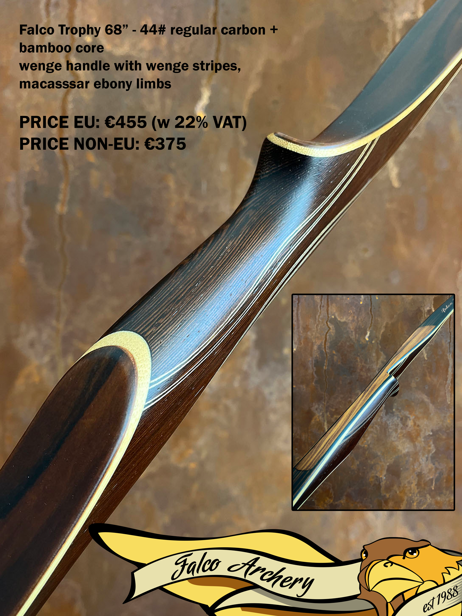 Please see in the gallery completed longbows we have in stock for immediate shipping. The technical specifications and the prices of each bow are listed on the photos.