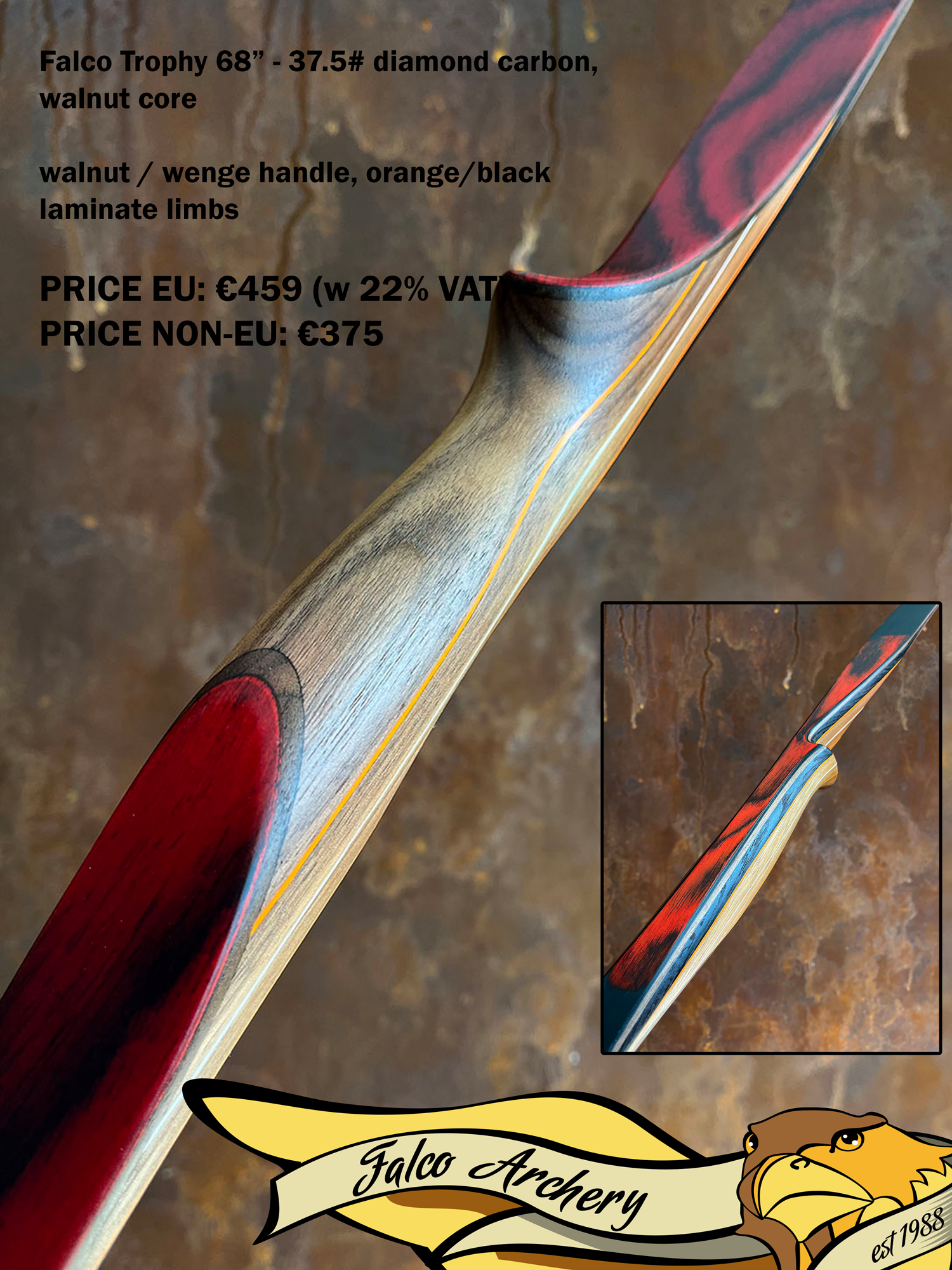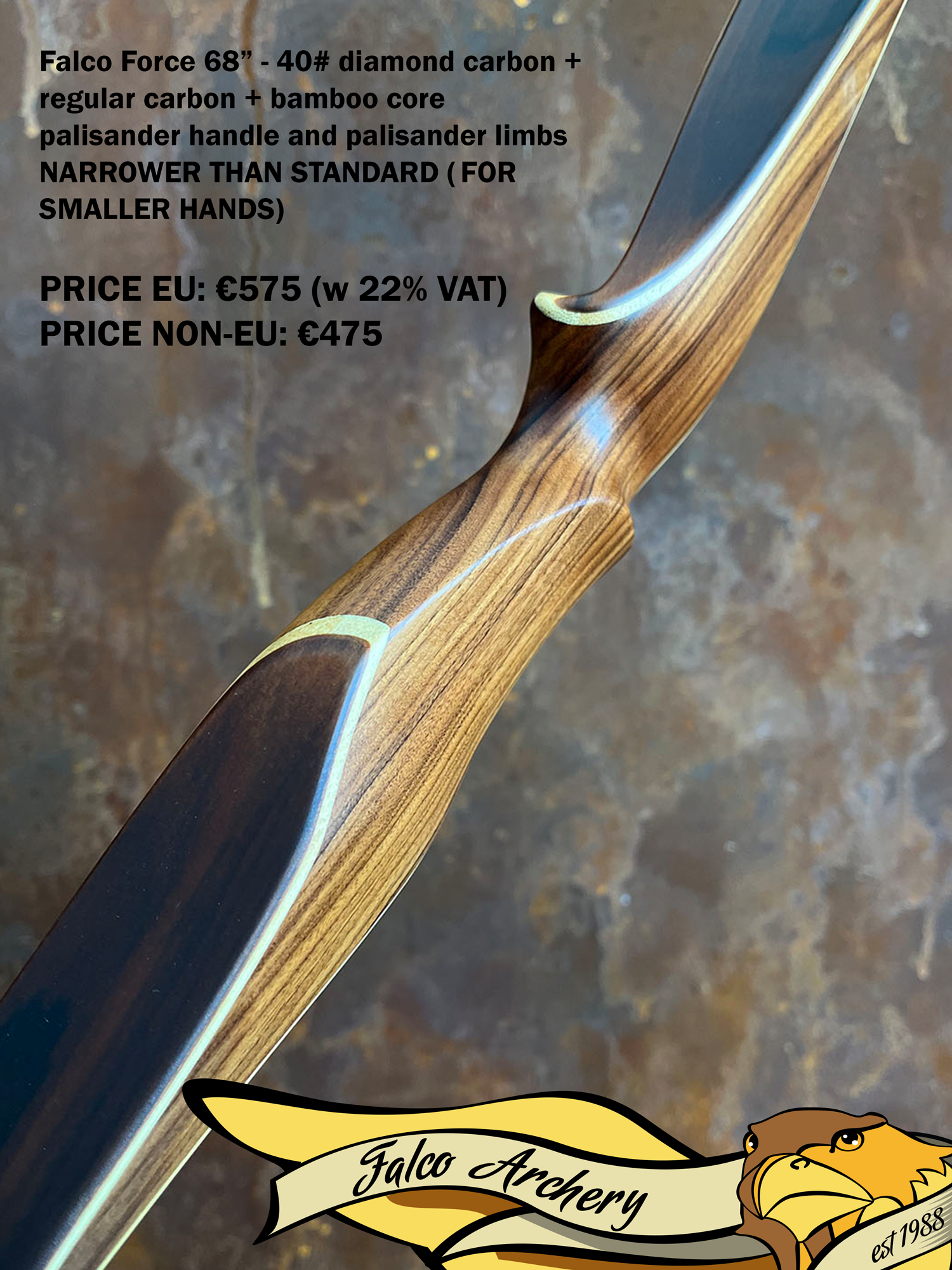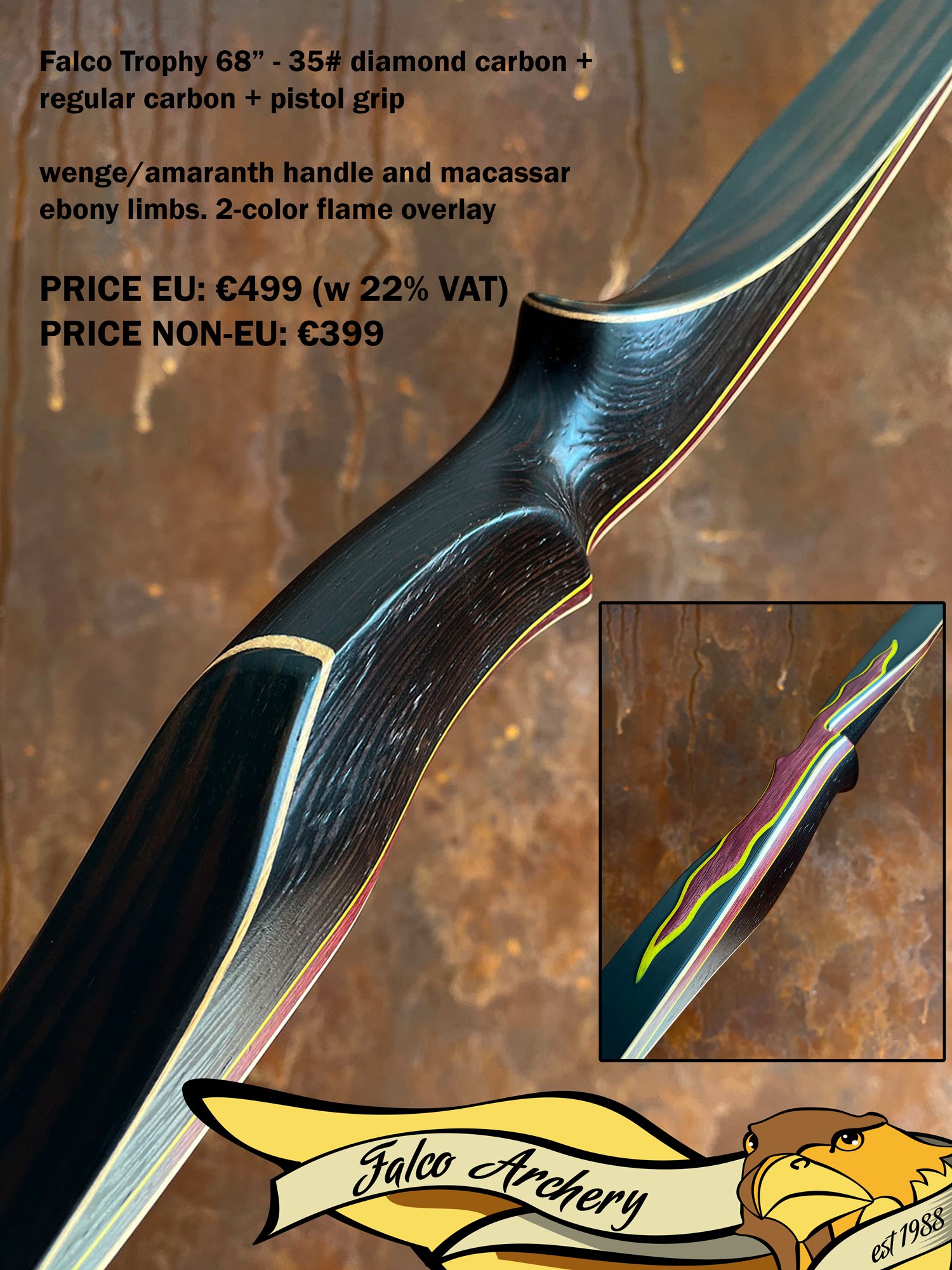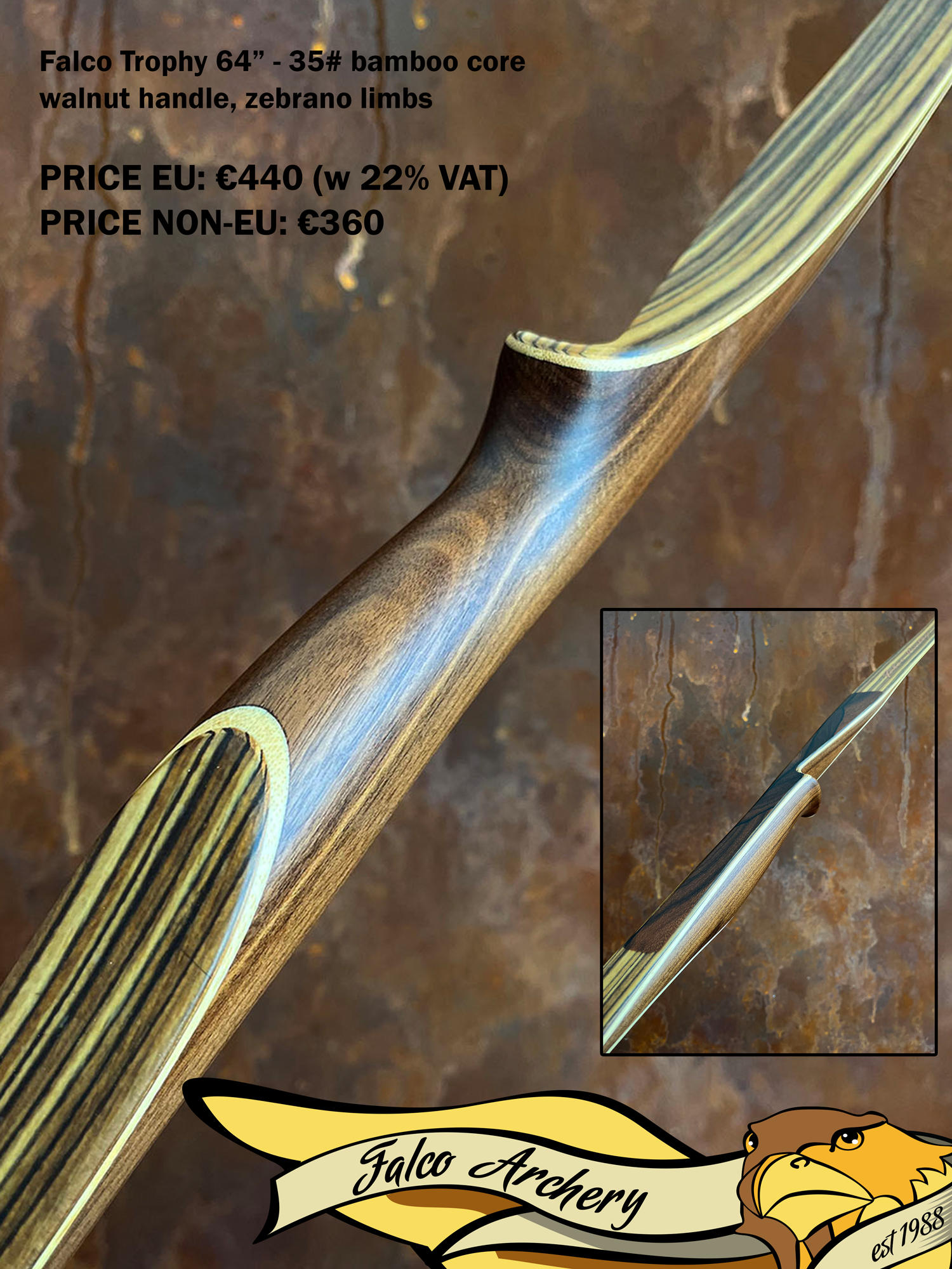 Please see in the gallery completed longbows we have in stock for immediate shipping. The technical specifications and the prices of each bow are listed on the photos.