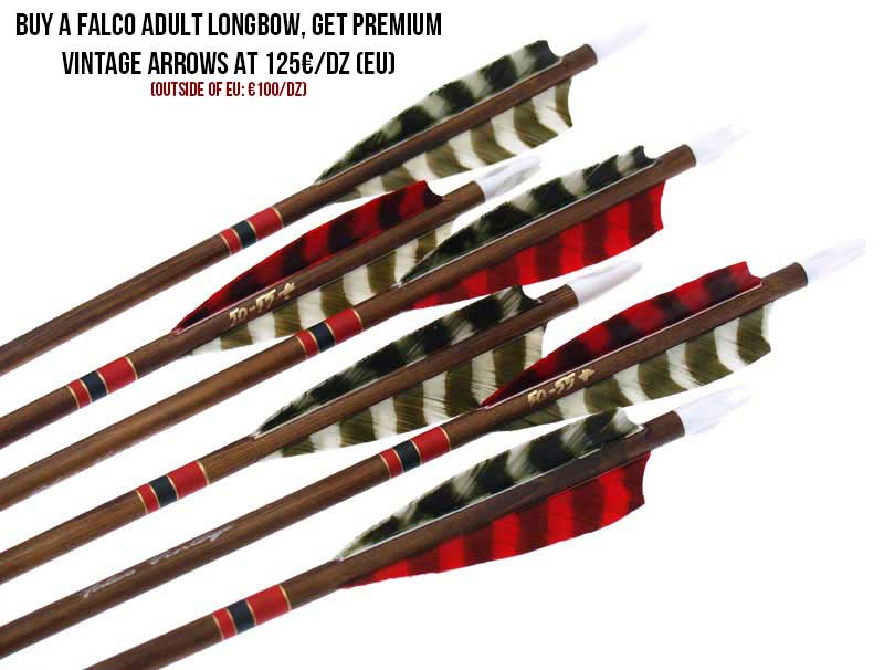 Although all main types of arrows (wooden, aluminum, carbon) could be used with this bow, the authentic choice would be to use wooden arrows. For optimum performance and highest quality, we suggest our hand-picked Premium model arrows which are the choice for many European and World Champions and medalists. The choice of wooden arrows depends on your bow and your own personal characteristics (write email@falco.ee in case of questions).